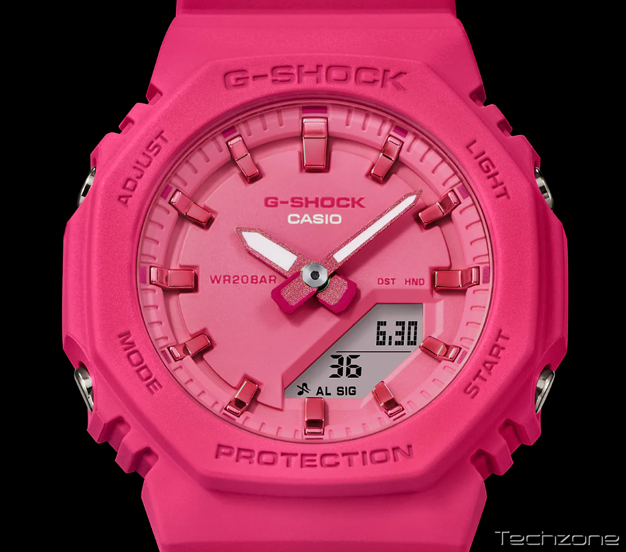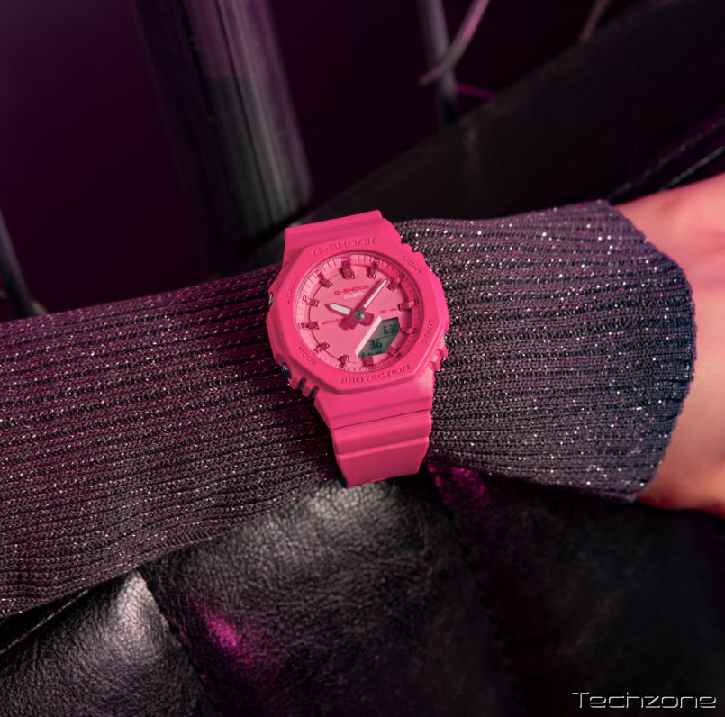 Підкресліть свою індивідуальність рожевим. Ця потужна рожева лінійка пропонує стильні, монохромні, витончені дизайни, що випромінюють індивідуальність. Тут немає липких солодких рожевих відтінків, лише ударостійкість. Восьмикутний безель та яскравий рожевий колір середнього діапазону поєднуються, створюючи стильний та модний вигляд. Стрілки та індекси, оброблені методом металевого напилення з парової фази, додають блискучого штриха монохромному дизайну. Цей годинник додає яскравості будь-якому повсякденному вбранню. Ключові смоляні компоненти, що використовуються в безелі, ремінці та інших матеріалах, виготовлені з біорозробленої смоли – матеріалу, виробленого з використанням відновлюваних органічних ресурсів, який, як очікується, допоможе зменшити вплив на навколишнє середовище.