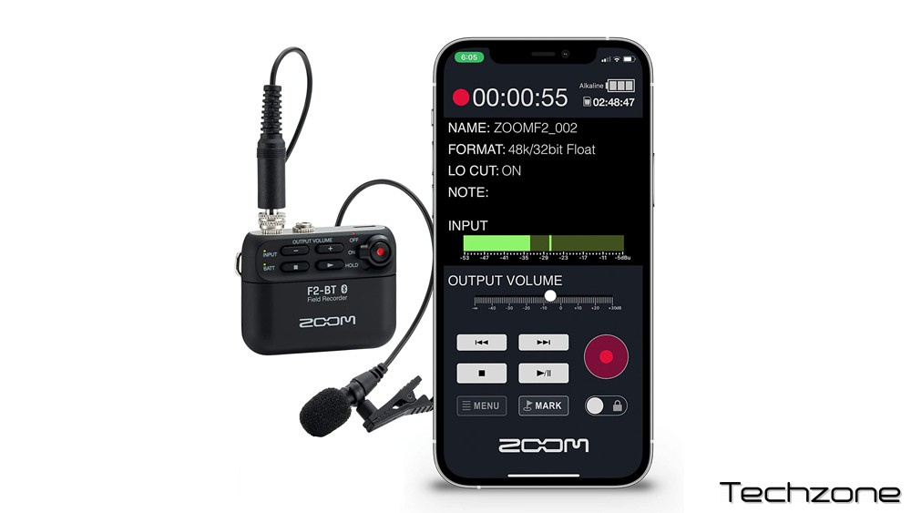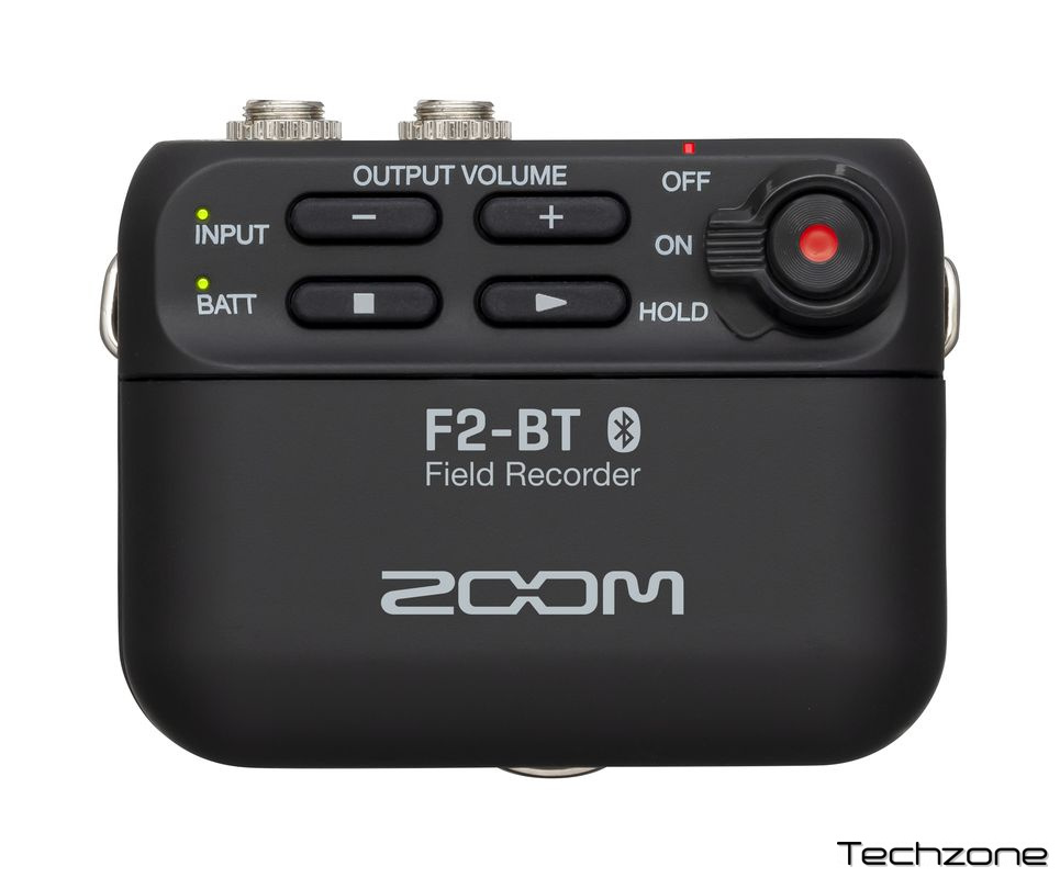 F2-BT оснащений вбудованим Bluetooth. За допомогою безкоштовного додатка Zoom F2 Control (для iOS/Android) F2-BT може бездротовим зв'язком запускати/зупиняти запис, відображати рівень заряду батареї, регулювати гучність вихідного сигналу, керувати петличним різанням і багато іншого. Ви також можете сполучити F2-BT з пристроєм синхронізації таймкоду Bluetooth для отримання та запису таймкоду в записані файли.