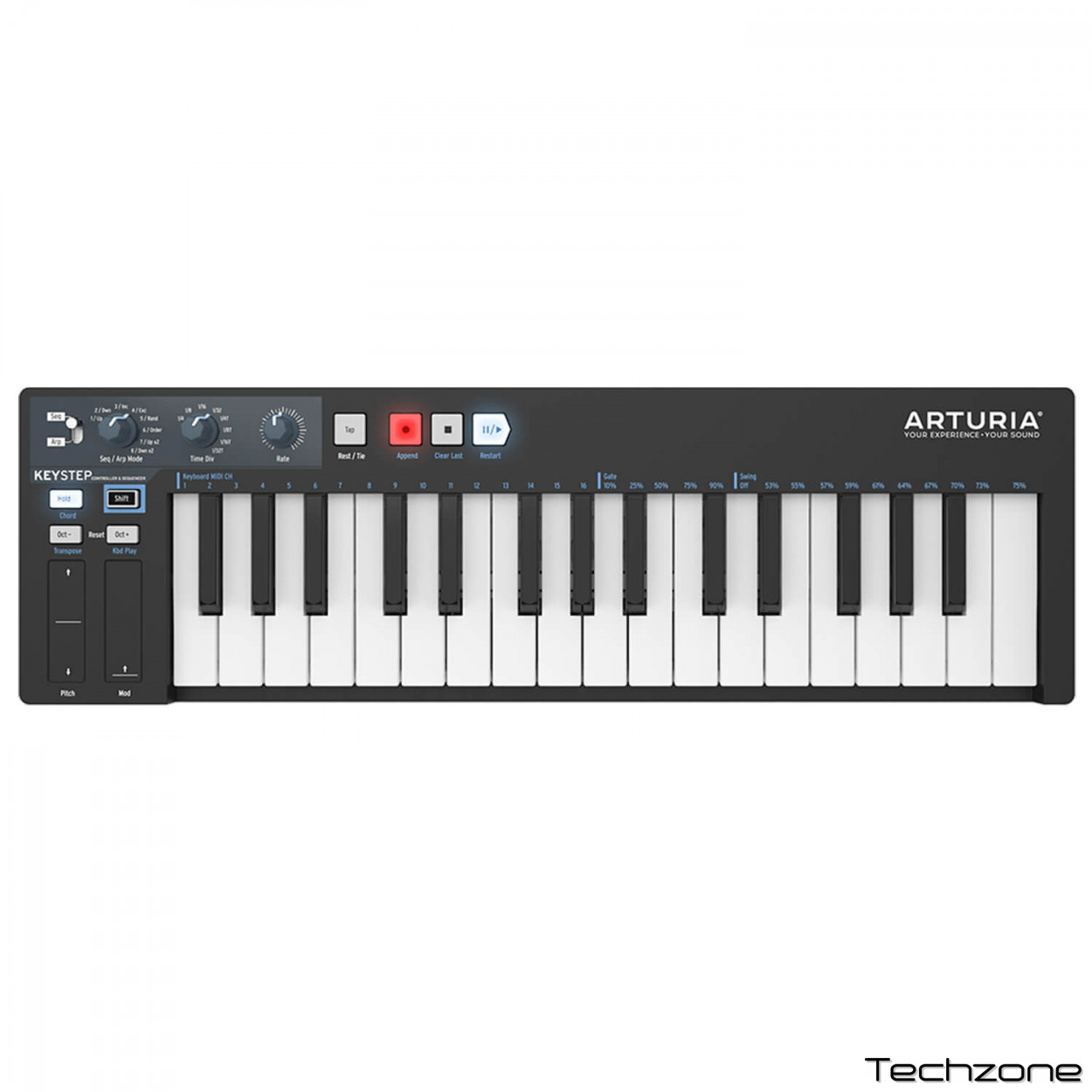 Незалежно від того, з якого обладнання складається сет-ап, KeyStep чудово увійде в нього, щоб підвищити ефективність творчих процесів. З KeyStep та кількістю його роз'ємів, Ви зможете керувати будь-яким цифровим або аналоговим синтезатором минулого, сьогодення і, навіть, майбутнього. Секвенсуйте все!