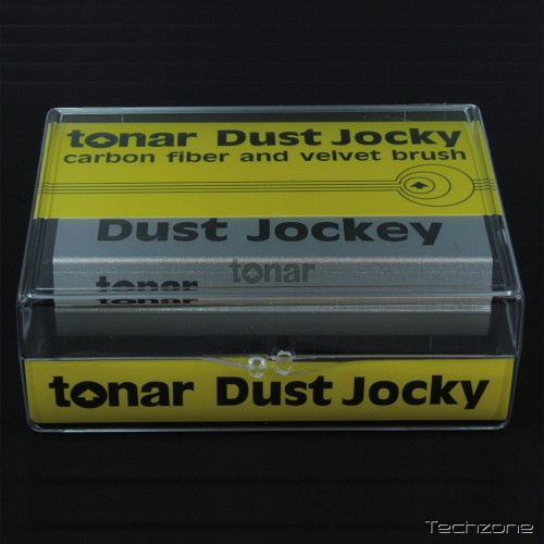 Tonar Dust Jockey Brush - це сучасний інструмент для чищення DJ-записів, який поєднує в собі властивості кисті Tonar Classic і кисті Nostatic в одному! Центральна частина щітки виконана з ультратонкого високоякісного оксамиту. Цей оксамит оточений з обох сторін товстим шаром ворсу дуже тонких вуглецевих волокон. Ці волокна видаляють статику з записи, тому пил відчіплюється від диска і може легко підхоплюватися оксамитом з середини щітки навіть з глибоких канавок.