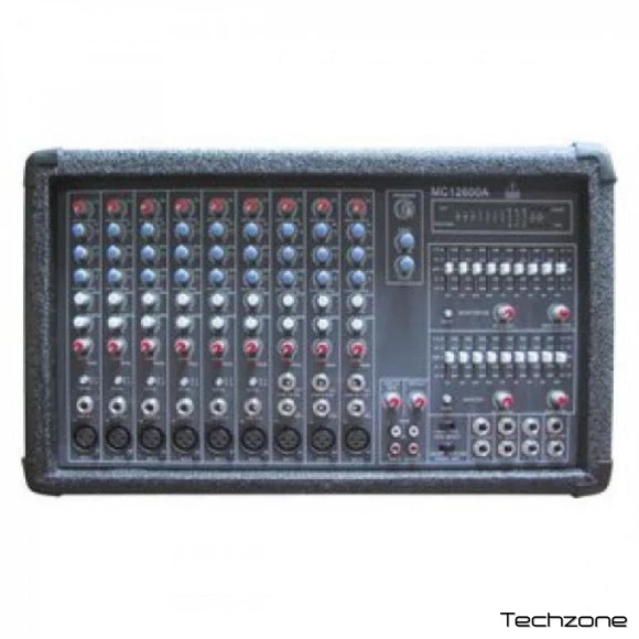 Компактний мікшерний пульт зі стереопідсилювачем 2 х 300 Вт. Нові високопотужні підсилювачі і чудові звукові характеристики. Ультранизький рівень шумів і великий динамічний діапазон. 12-канальна секція мікшера з 6 моно, 3 стереоканалами і окремим входом CD/Tape. Стерео 24-бітний мультиеффект-процесор студійної якості, 9 високоякісних мікрофонних передпідсилювачів, з фантомним живленням +48 В, що підключається. Ефективні, 3-смугові еквалайзери з високою музикальністю на моноканалах. Перемикачі рівня вхідного сигналу +4/-10 і світлодіодні канальні індикатори Clip на моноканалах, подвійний 9-смуговий графічний еквалайзер в майстер-секції, операційні режими підсилювача Stereo, Double mono і Bridge з індикацією, що перемикається. Мультифункціональні стереовиходи зовнішній підсилювач і прямий стереовхід підсилювача потужності. Високоякісні компоненти та виняткова надійність конструкції.