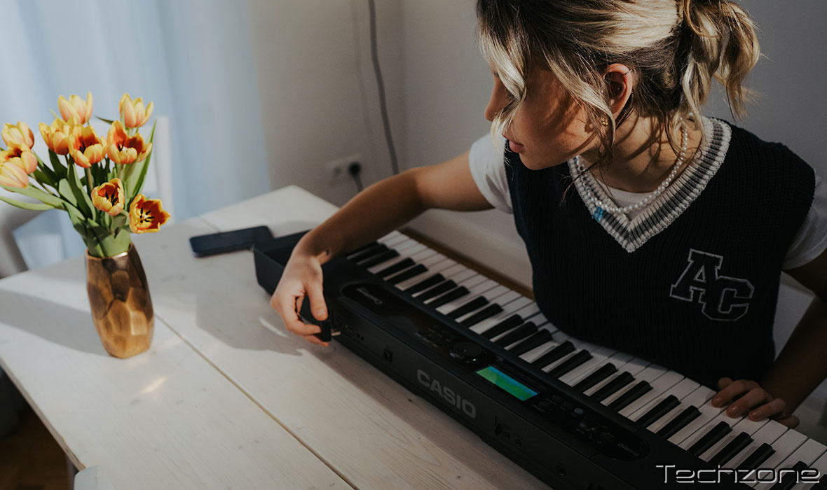 Потужний та компактний. Тонкий корпус моделі CT-S400 дозволяє легко переміщати його і встановлювати в будь-якому місці. Створюйте музику в будь-якому місці з підставкою, столом або без них. Ідеально впишеться навіть в умовах обмеженого простору завдяки зручним фіксаторам для ремінця та можливості роботи від 6 батарейок типу AA. З моделлю CT-S400 ви завжди будете у центрі уваги