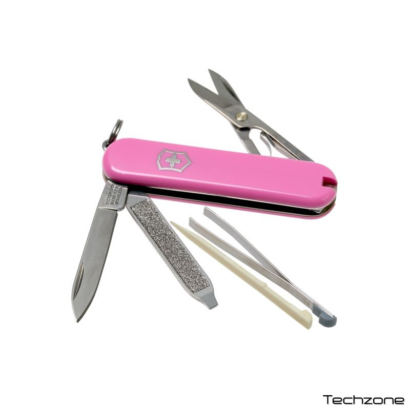 Складаний ніж Victorinox Classic SD 0.6223.51 в яскравому дизайні. Мила і водночас необхідна річ, яка знайде застосування в руках кожної людини, а приємний рожевий колір і функціонал напевно сподобається представницям жіночої статі. Завдяки лаконічній двошаровій конструкції та тонкому дизайну, цей мультитул серії Classic SD легко поміститься в сумочці або кишені. Компактний корпус з функцією ручки виконаний з органічного пластику з глянцевим покриттям. Металеві інструменти виготовлені з високоякісної неіржавної сталі з високою стійкістю до деформації та корозії. Різальні краї протягом довгого часу тримають ідеальне заточення. Абсолютно всі матеріали, використані для кишенькового ножа Victorinox Classic SD, мають гарантію якості на матеріали та виготовлення. Комплектація цієї моделі містить невеликий ніж з гладким лезом, ножиці, а також пилку для нігтів, комбіновану на наконечнику з невеликою плоскою викруткою 2,5 мм. Класичний комплект з пінцета і зубочистки витягується з торця ручки. Щоб мультитул завжди був напохваті, вмонтовано надійне сталеве кільце для ключів або брелока. Всі інструменти легко витягуються і зручні в експлуатації. Оптимальний набір функцій робить девайс дуже легким (всього 26 г), а довжина в 58 мм дозволить носити цей ніж-брелок завжди з собою. Щоб Ви були впевнені в збереженні Victorinox Classic SD, він укомплектований маленьким чохлом, який захистить від пилу та інших забруднень. Складані ножі Victorinox (Вікторінокс) виготовлені у Швейцарії та відрізняються стабільною надійністю і міцністю всіх матеріалів, а також довговічністю і зручністю у використанні. Яскравий і унікальний девайс стане вигідним придбанням, а також приємним незабутнім подарунком. Кишеньковий складаний ніж Classic SD доступний на нашому сайті в різних кольорах - вибір тільки за Вами.