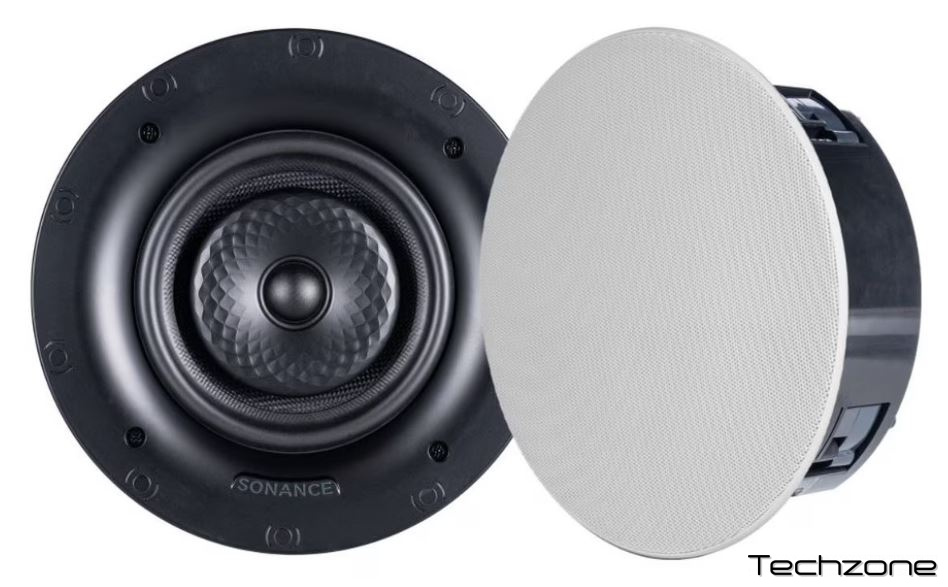 VX62R TL 6-дюймовий круглий тонкий стельовий динамік з білою мікрообробною решіткою.