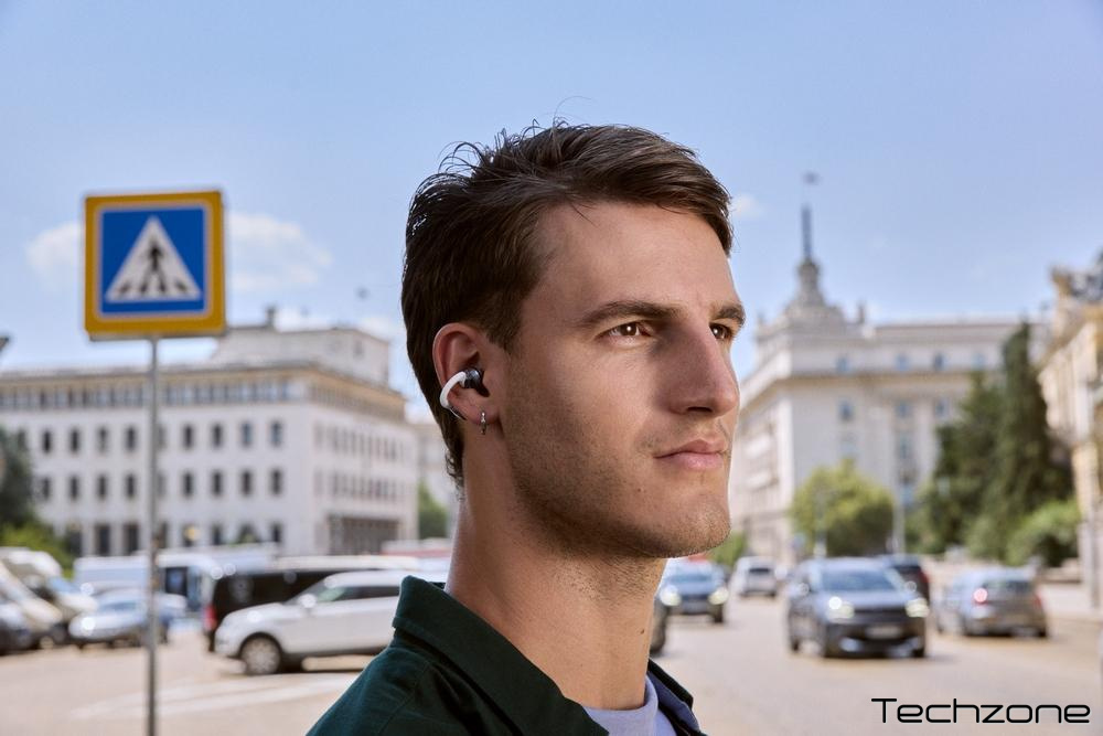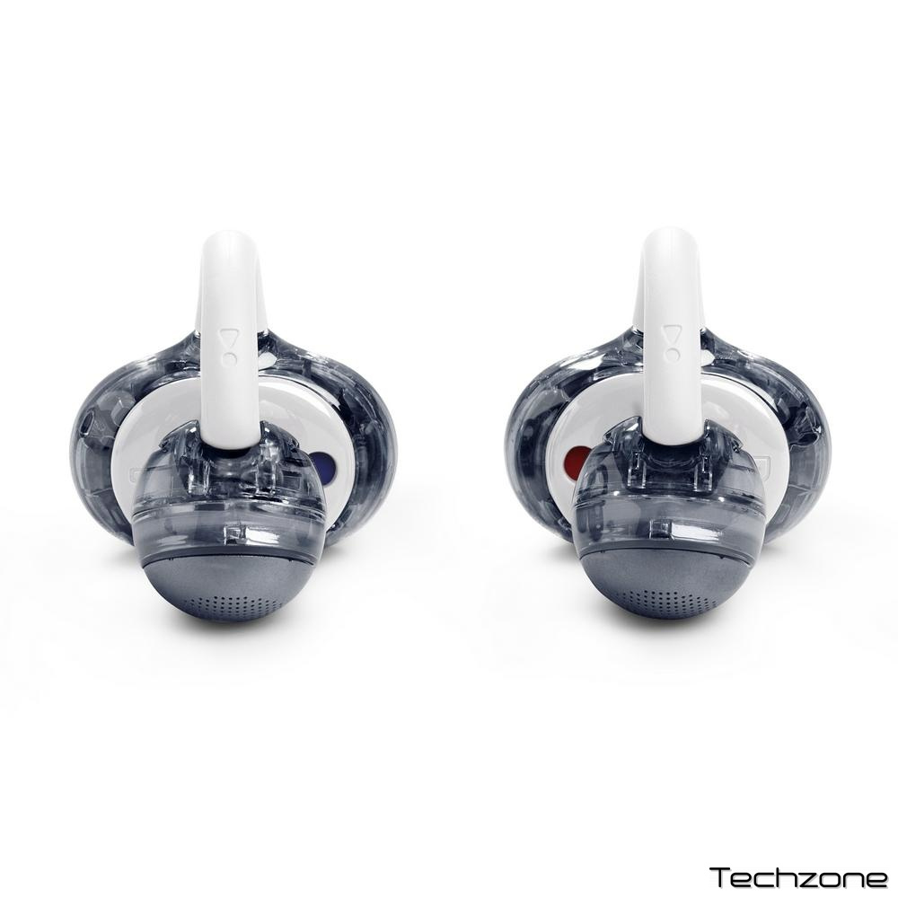 Динамік у JBL Soundgear Clips розташований під точним кутом, щоб звести витік звуку до мінімуму. Дизайн SonicArc додає глибини басам і зберігає приватність — музику та дзвінки чуєте лише ви. Водночас відкритий формат навушників не блокує вушний канал, тож ви залишаєтесь у курсі всього, що відбувається довкола.