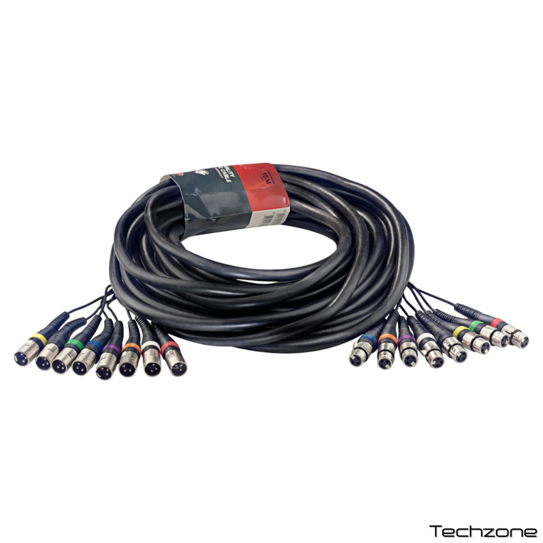 STAGG SML15/8XF8XM E — це надійний багатожильний кабель довжиною 15 метрів, створений для професійної сцени та студійної роботи. Оснащений 8 роз’ємами XLR «мама» та 8 роз’ємами XLR «тато», він забезпечує стабільне з’єднання й передачу аудіосигналу без втрат. Чорна оболонка додає кабелю акуратного вигляду, а відповідність стандарту RoHS гарантує екологічність і безпеку використання. Ідеальний вибір для концертних майданчиків, студій звукозапису та гастрольних турів.