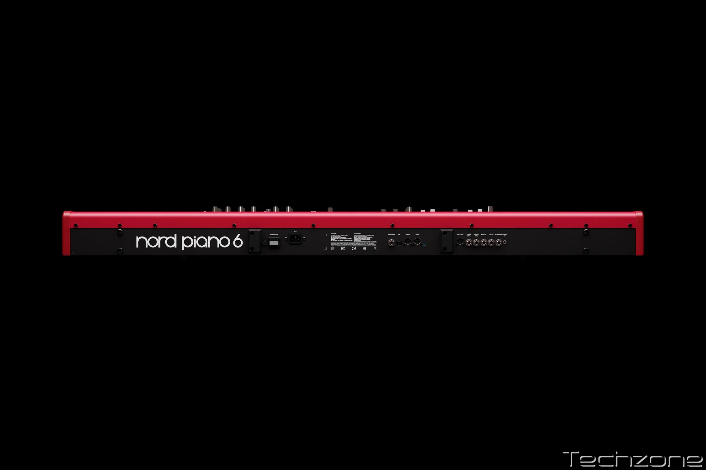 Nord Piano 6 88 оснащене всіма необхідними роз’ємами для зручного підключення у професійних умовах. Інструмент має два аудіовиходи (L/R, 6,35 мм Jack), а також вхід для моніторингу (3,5 мм Jack). Передбачено вихід для навушників (6,35 мм Jack).