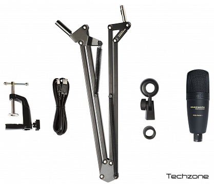 Marantz Pod Pack 1 – це професійне оновлення будь-якої студії. Комплект складається з високоякісного конденсаторного USB-мікрофона в поєднанні з повністю регульованим підвішуванням, завдяки чому стіл залишається вільним, а мікрофон завжди знаходиться в потрібному положенні для подкастингу, трансляції або озвучування. Збірка здійснюється одним моментом, а шарнірні затискачі стріли надійно закріплені майже на будь-якому столі або поверхні.