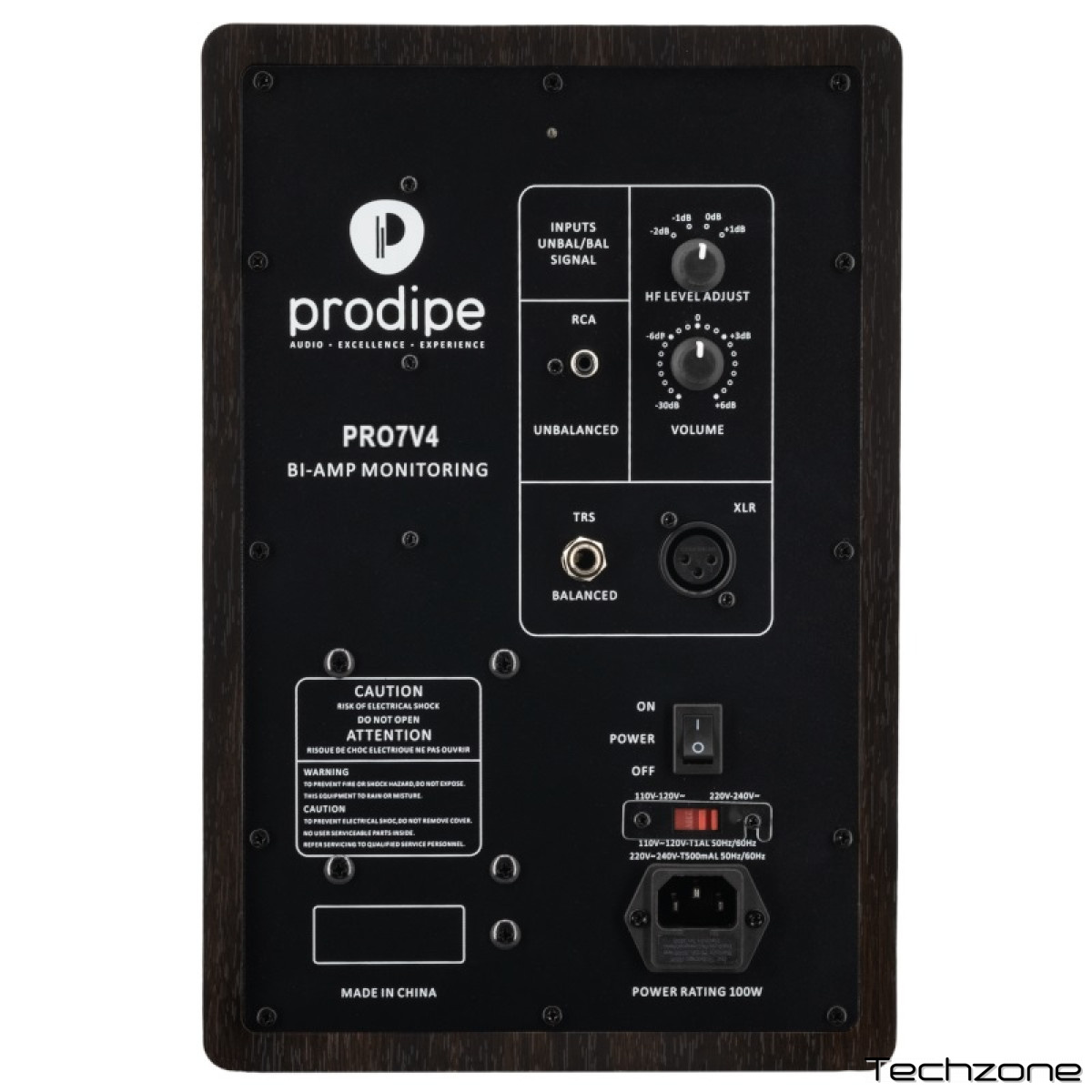Корпус виготовлений з деревини високої щільності, що забезпечує відсутність небажаних вібрацій і стабільну якість звуку. Монітор підтримує універсальні підключення: збалансовані XLR та TRS 1/4”, а також незбалансований RCA. Pro 7 V4 також обладнаний регулятором високих частот, що дозволяє точно налаштовувати звучання відповідно до потреб, від чистого моніторингу до тонкого прослуховування аудіо.