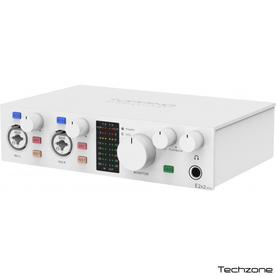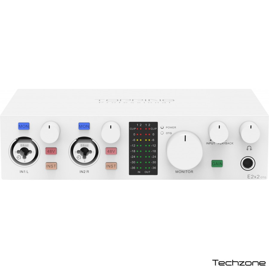 Topping Professional E2x2 OTG – відмінний аудіоінтерфейс, створений для музикантів та аудіопрофесіоналів. Цей пристрій забезпечує високий рівень продуктивності для абсолютно прозорого запису та відтворення.