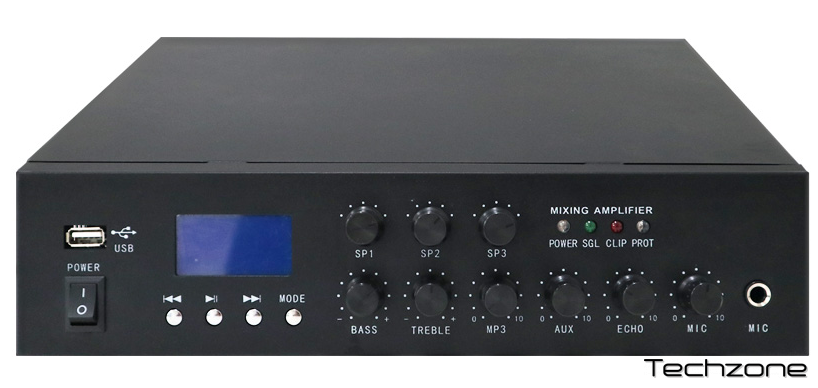 PAMP-60-BT Трансляційний підсилювач потужності 50Вт. Входи: 1 х мік., 1 х AUX. Виходи: 4-16 Ом, 100В, 1х AUX. Діапазон частот 40 Гц-18 кГц±0.5 дБ. Відношення сигнал/шум > 70 дБ. FM приймач, USB/SD програвач. Розмір: 300х230х120 мм. Вага 4 кг.