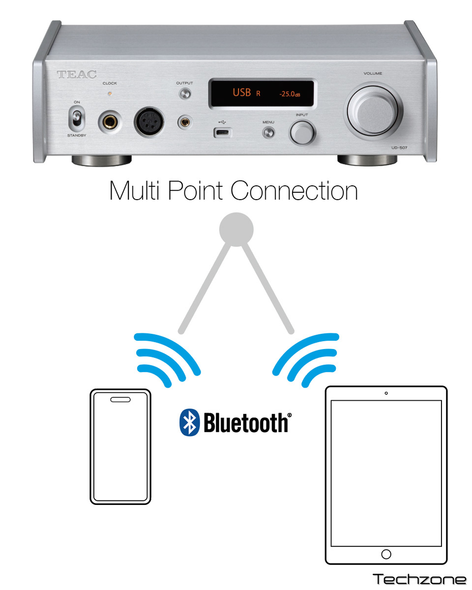 UD-507 містить високоточний аналоговий атенюатор гучності TEAC-QVCS та потужну схему буферизації лінії TEAC-HCLD2 для високого струму. Завдяки п'яти цифровим входам та двом аналоговим входам (небалансному та балансному) можна підключити широкий спектр пристроїв.