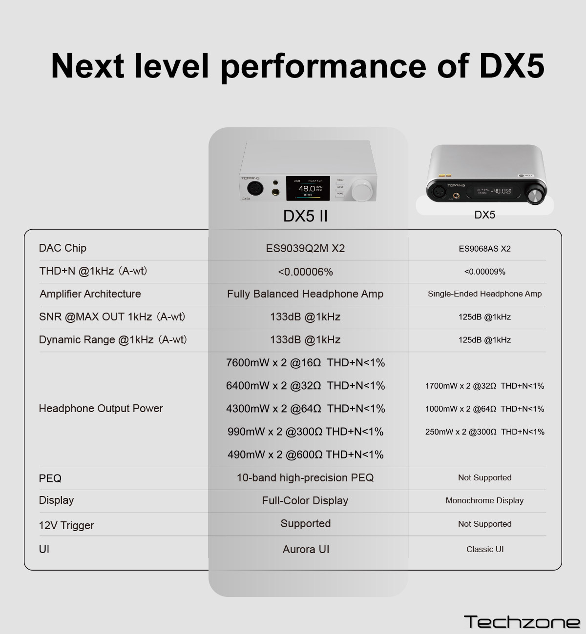 DX5 II видає до 7600 мВт ×2 @16Ω, що дозволяє без зусиль розкривати потенціал навіть найвибагливіших навушників.
