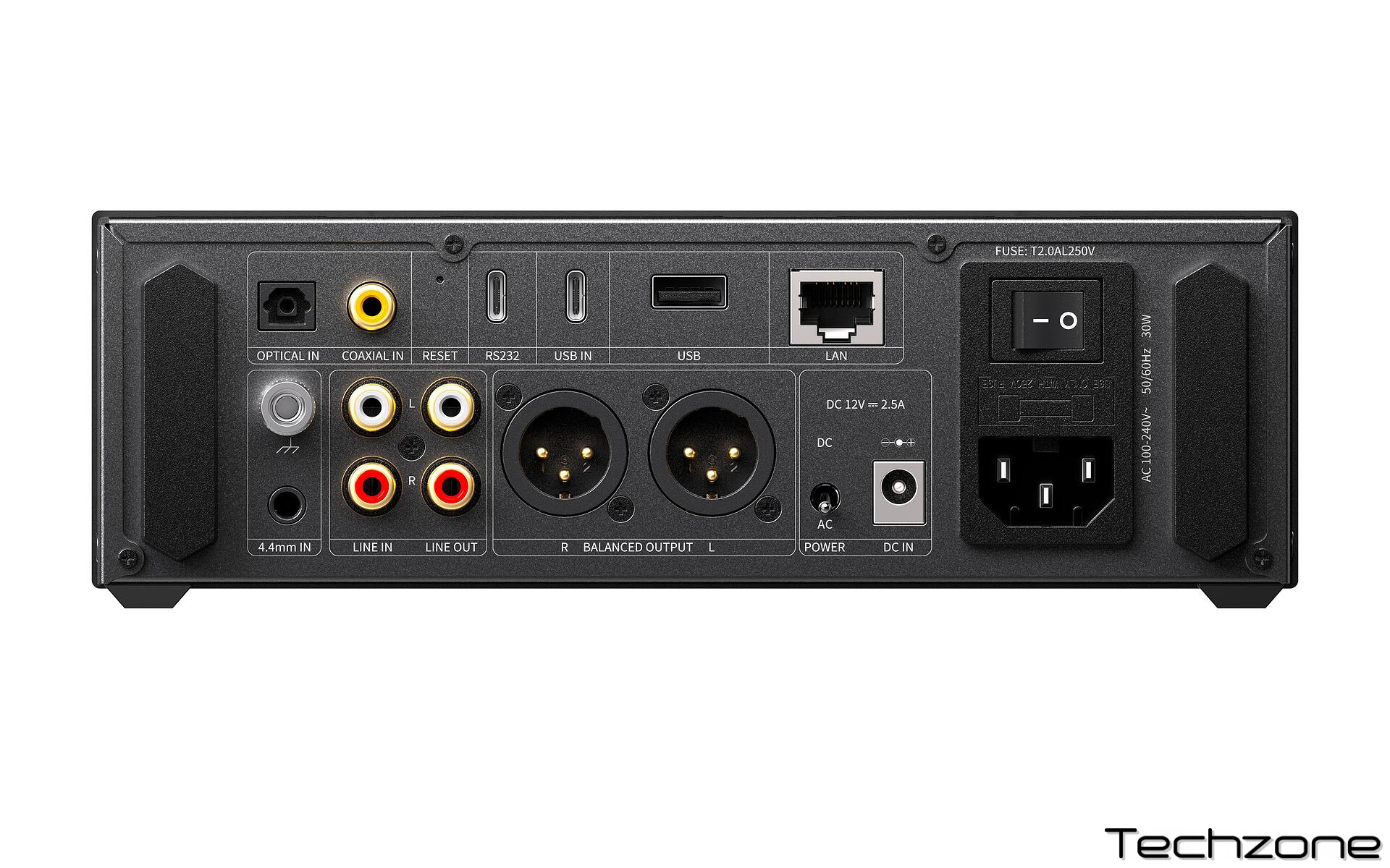 Він підтримує традиційні цифрові входи — USB-A , USB Type-C , оптичний та коаксіальний — поряд з лінійними та збалансованими аналоговими входами , забезпечуючи повну гнучкість відтворення, включаючи локальне USB-сховище та потокову передачу файлів.