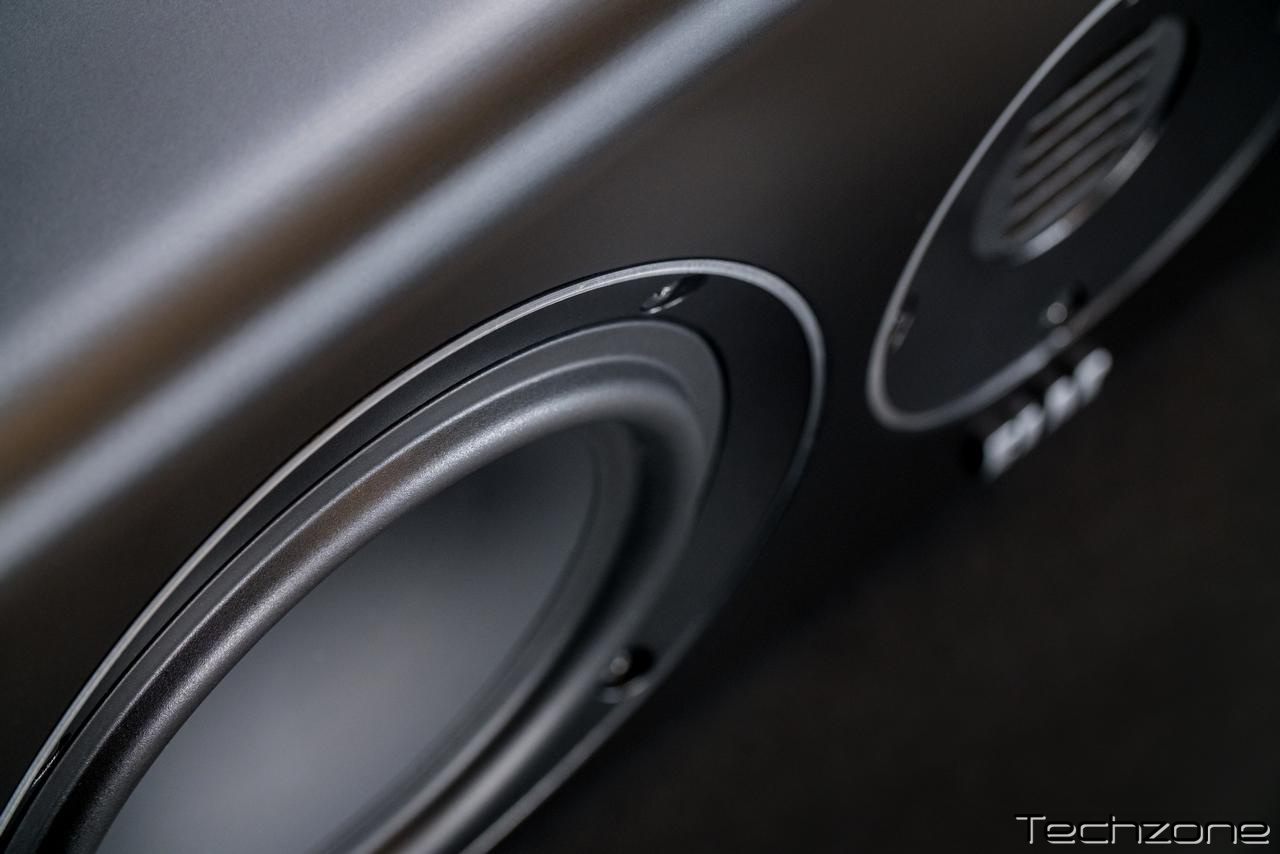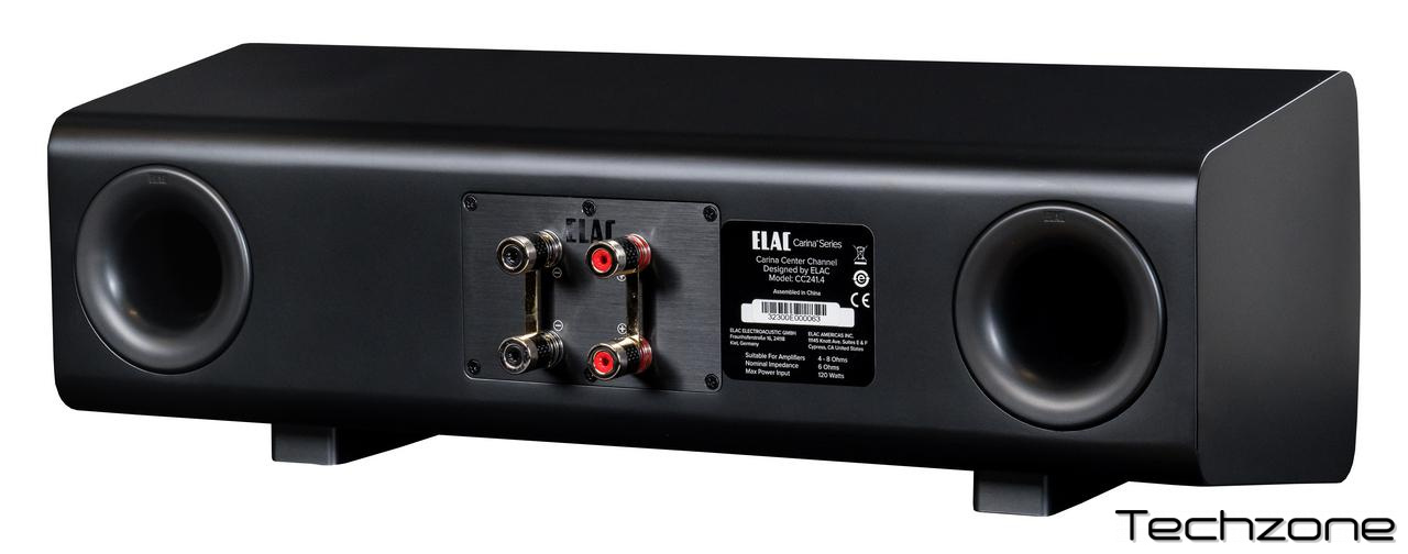 Цікавою особливістю ELAC Carina CC 241 є застосована в цій моделі трисмугова конфігурація. При цьому і НЧ-, і СЧ-динаміки в колонці зовні однакові — вони мають діаметр 5,25 дюйми та суцільні алюмінієві дифузори, закріплені на широкому підвісі. Тим не менш, індивідуальний розрахунок параметрів кожного динаміка у поєднанні з точно узгодженим з ними розділовим фільтром (частота налаштування 100 Гц) дозволили отримати збалансоване та артикульоване звучання на середніх частотах та мідбасі. Крім того, трисмугова конфігурація додатково розширила загальну діаграму спрямованості акустичної системи та вирівняла її. В результаті для глядачів, що сидять на відстані від центру екрана, звучання акустики буде таким же збалансованим і точним, як і для тих, хто знаходиться в середині домашнього кінозалу.