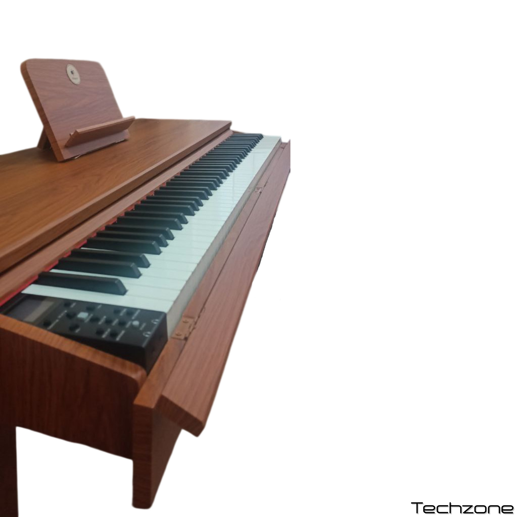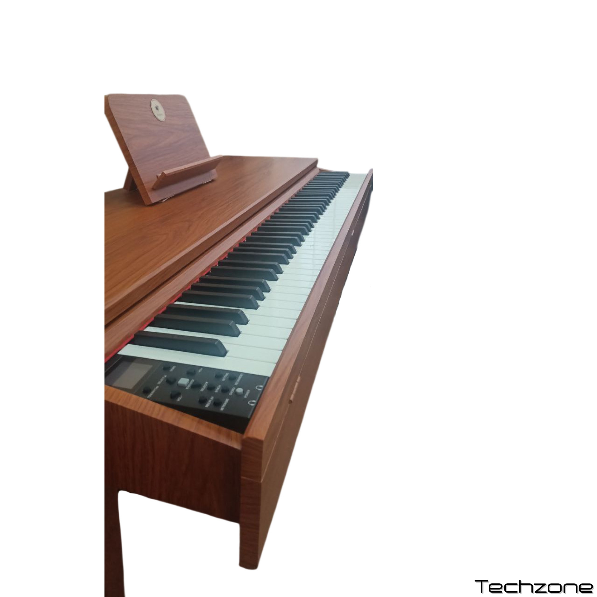 Клавіатура інструмента розроблена з урахуванням потреб піаністів: 88 клавіш із молоточковою механікою відтворюють тактильні відчуття гри на акустичному фортепіано. Для максимальної експресії передбачено п’ять рівнів налаштування динамічної чутливості клавіш, що дозволяє точно передавати кожне натискання. Повноцінний педальний блок, що включає функції сустейну, состенуто та софт, надає музиканту повний спектр можливостей для контролю над тривалістю та характером звуку.