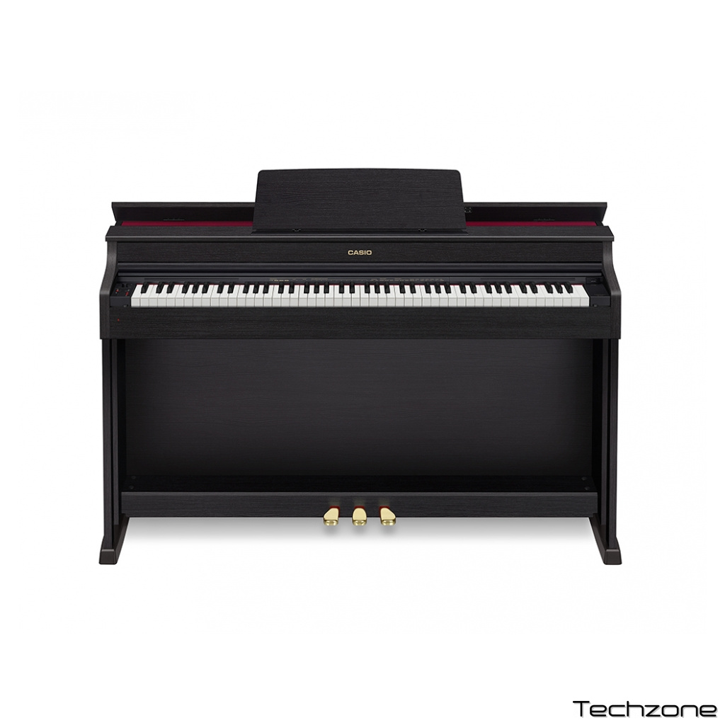 Нова модель Casio Celviano AP-470 змушує битися частіше серце кожного музиканта: її відрізняє елегантний дизайн і чудовий звуковий процесор AiR, що включає 22 автентичних тембру — у тому числі, характерних для двох концертних роялів, що відрізняються оригінальним звуком, — а також безліч функцій звуковідтворення, акустики та аудіоефектів. Насолоджуйтеся об'ємним звуком при відкритій кришці. Специфічна особливість: CELVIANO AP-470 з безкоштовним додатком Chordana Play for Pianos можна управляти з планшета чи смартфона.