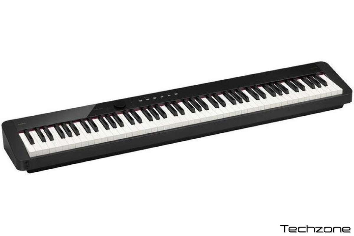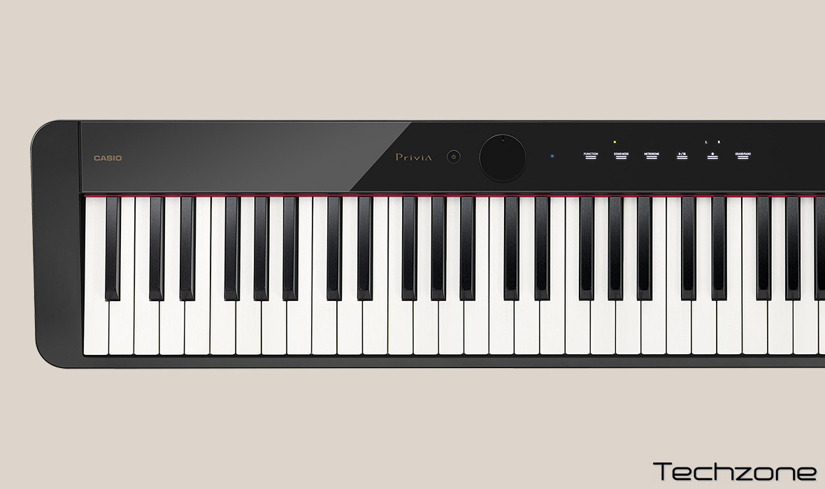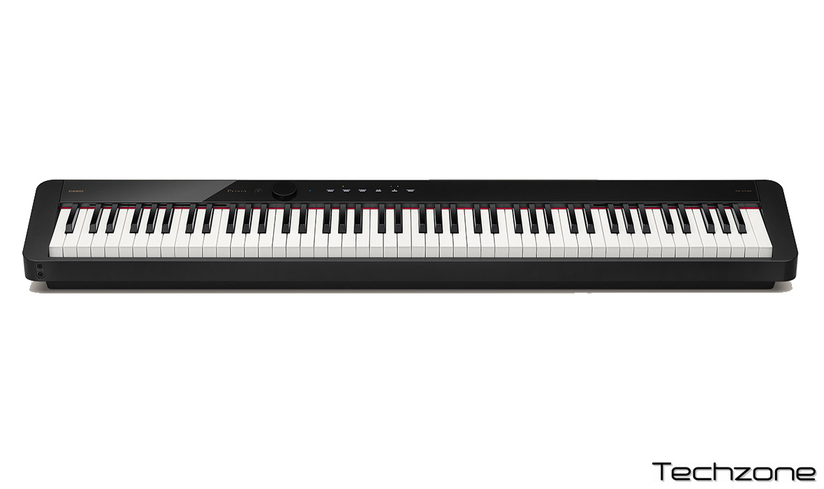 Casio PX-S1100 BK – це оновлене цифрове піаніно 2021 року, яке прийшло на зміну бестселлеру Casio PX-S1000 BK. У новій моделі все той самий ідеальний глянсовий корпус, але трохи перероблений. Інструмент став на 20% тоншим, і це найтонше цифрове піаніно з молоточковим механізмом на ринку. Після увімкнення інструменту загоряються м'яким синім кольором сенсорні органи керування.