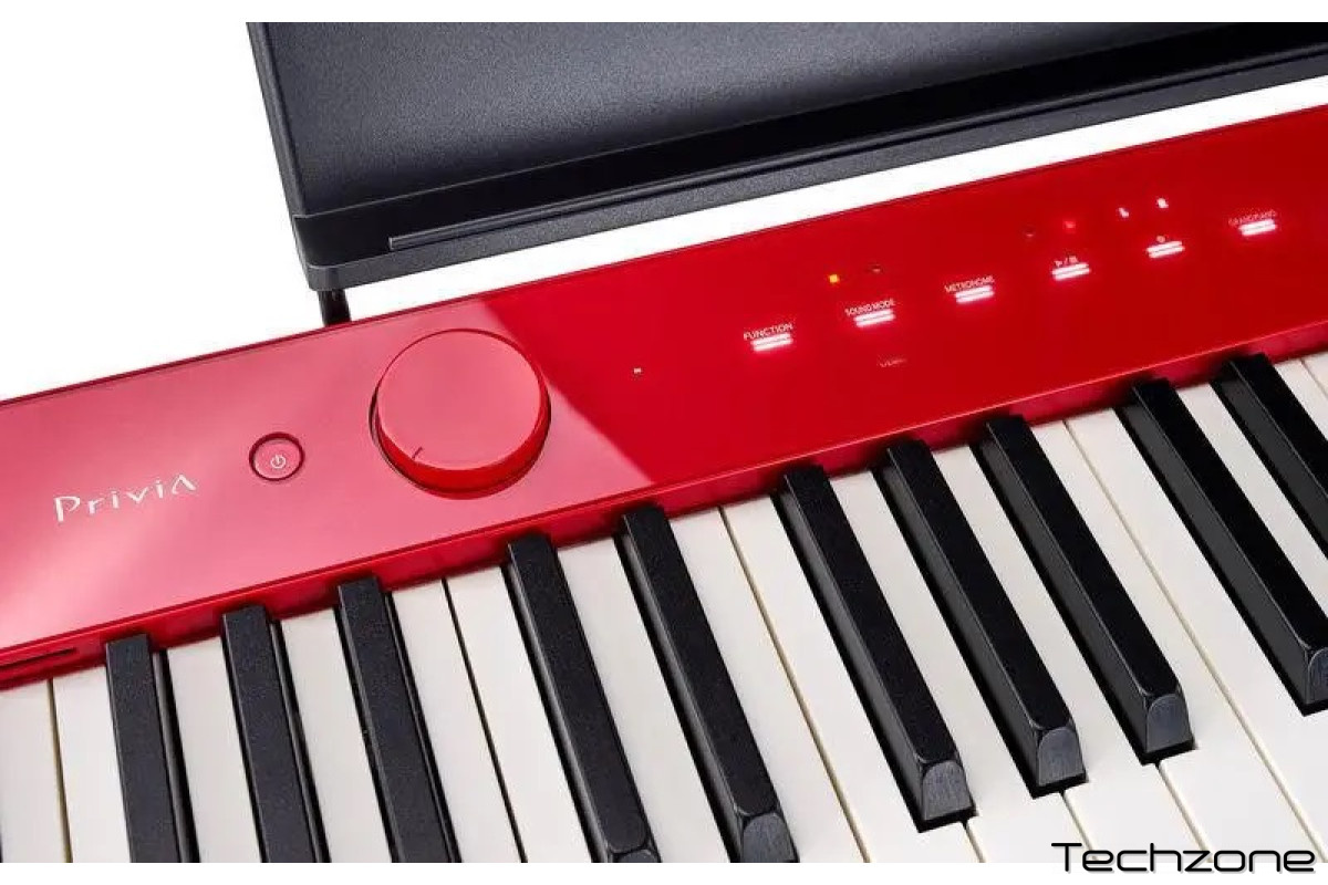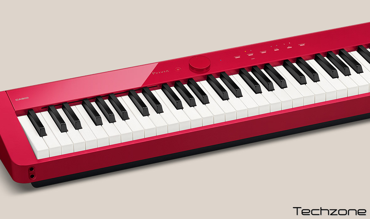 Casio PX-S1100 RD - це оновлене цифрове піаніно 2021 року, яке прийшло на зміну бестселлеру Casio PX-S1000 RD. У новій моделі все той самий ідеальний глянсовий корпус, але трохи перероблений. Інстурмент став на 20% тоншим, і це найтонше цифрове піаніно з молоточковим механізмом на ринку. Після увімкнення інструменту загоряються м'яким синім кольором сенсорні органи керування.