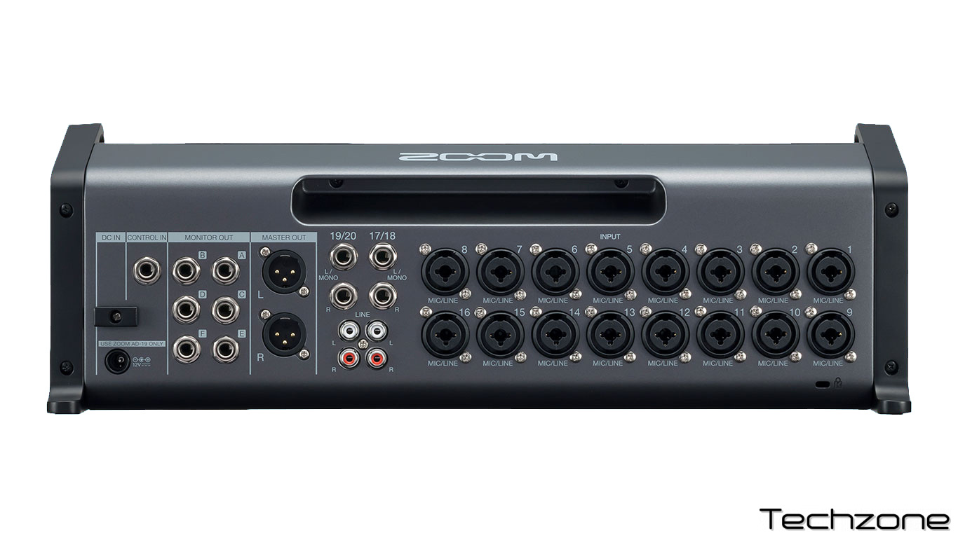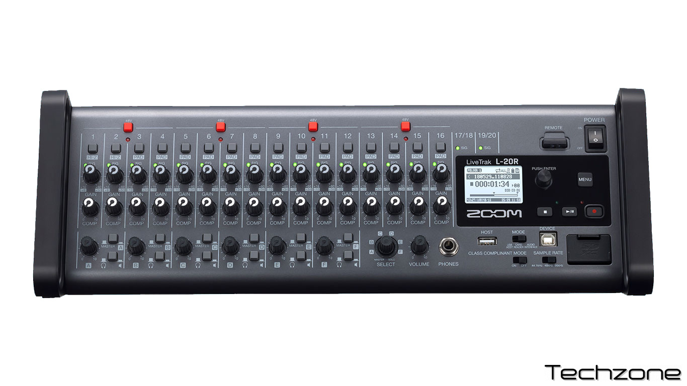 16 моно-каналів оснащені ручками керування компресором і посиленням. L-20R оснащений найбезшумнішими і просунутими передпідсилювачами Zoom з еквівалентним вхідним шумом -128 дБн і максимальним вхідним посиленням до +60 дБ.