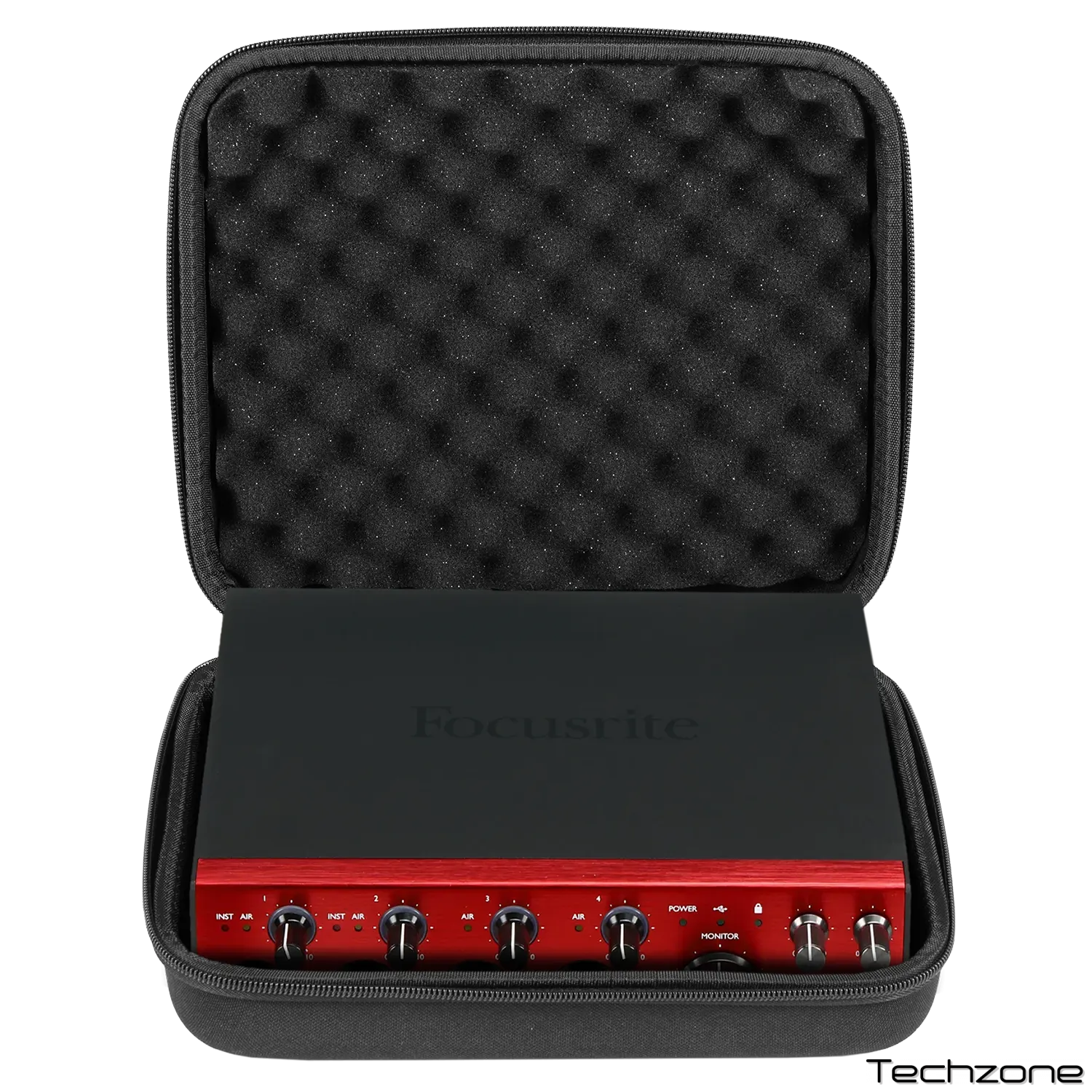 Компактний кейс для популярних аудіоінтерфейсів Focusrite та Clarett. Захищає від подряпин, пилу й випадкових ударів. • Зовнішні розміри: 24,9 × 21,3 × 7,6 см • Вага: 0,4 кг • Сумісність: Focusrite Scarlett 2i2 / 4i4 (4-го покоління), Clarett 4Pre / 2Pre