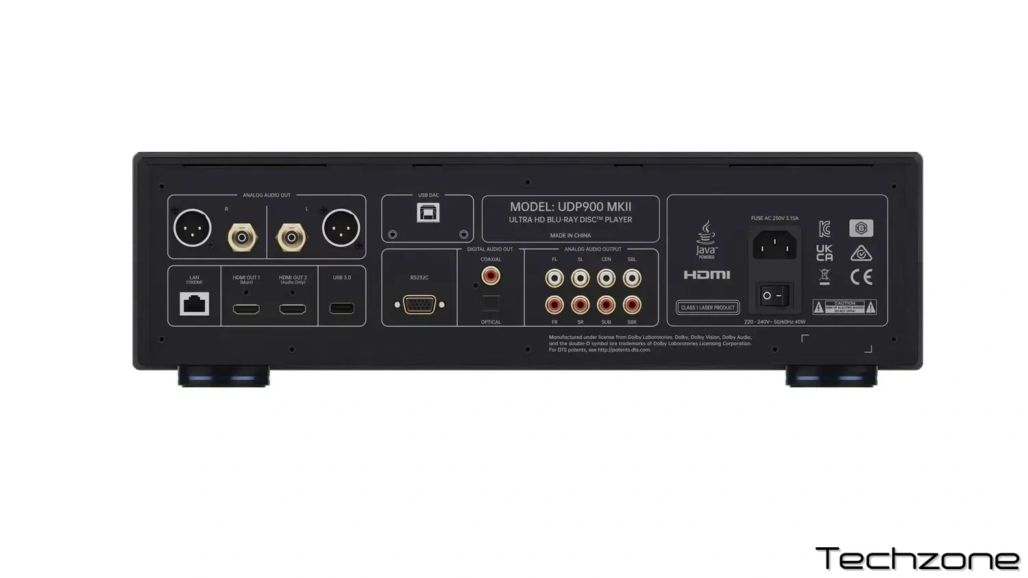 - Аналоговий аудіовихід: 7.1-канальний RCA, 2-канальний RCA та балансний XLR