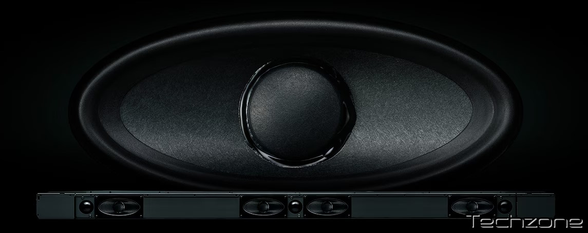 Наше завдання: забезпечити надзвичайний звук із тонкого саундбара. Наш секрет: нещодавно розроблені, спеціально розроблені динаміки у формі ока. Оптимізуючи форму, структуру та магнітну схему основних фронтальних динаміків, ми значно покращили міцність конуса та чіткість високих частот. Результат — чистий, реалістичний звук без акустичних перешкод, у елегантному форм-факторі, який ідеально доповнює ваш телевізор та декор.