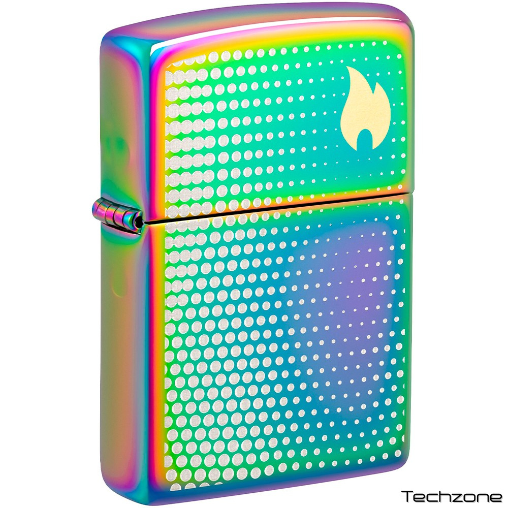 Оточена заспокійливим масивом крапок, значок полум'я Zippo вінчає кришку цієї класичної багатокольорової запальнички в заворожливому двоколірному дизайні Laser. Постачається в подарунковій коробці. Для оптимальної роботи заправте паливом для запальничок Zippo.