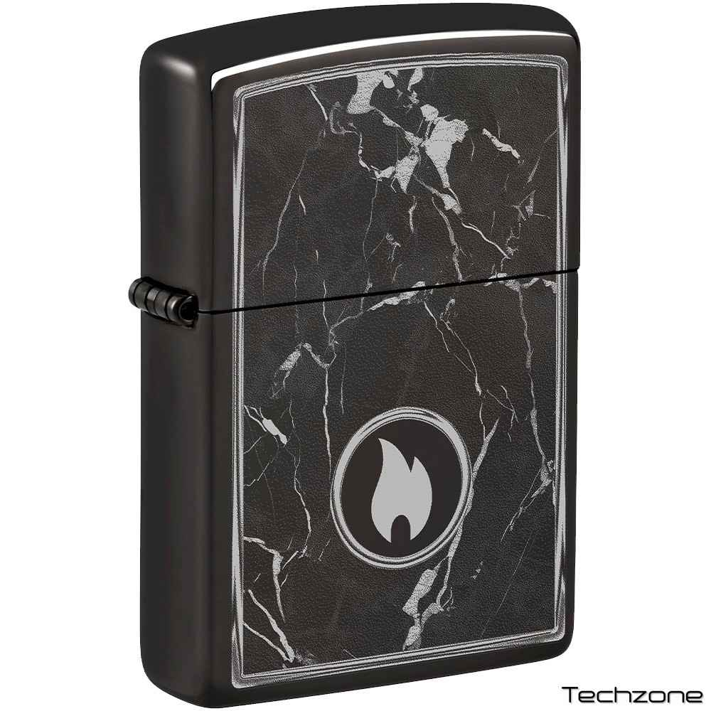 Оточена реалістичними мармуровими прожилками, значок полум'я Zippo з'являється на поверхні цієї класичної полірованої чорної запальнички у заворожливому дизайні Photo Image. Постачається в подарунковій коробці. Для оптимальної роботи заправляйте паливом для запальничок Zippo.