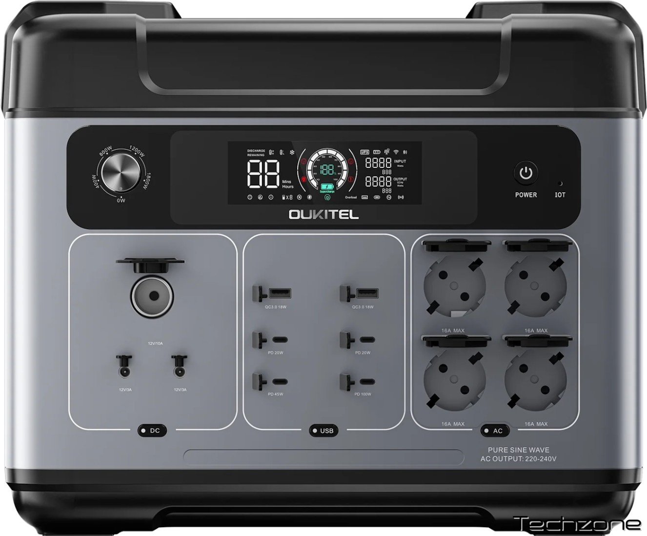Надшвидка зарядка потужністю 1800 Вт гарантує, що ви зможете зарядити пристрій до 80% протягом 1 року. Водночас, ручка регулювання швидкості зарядки дозволяє зменшити потрібну вам швидкість.