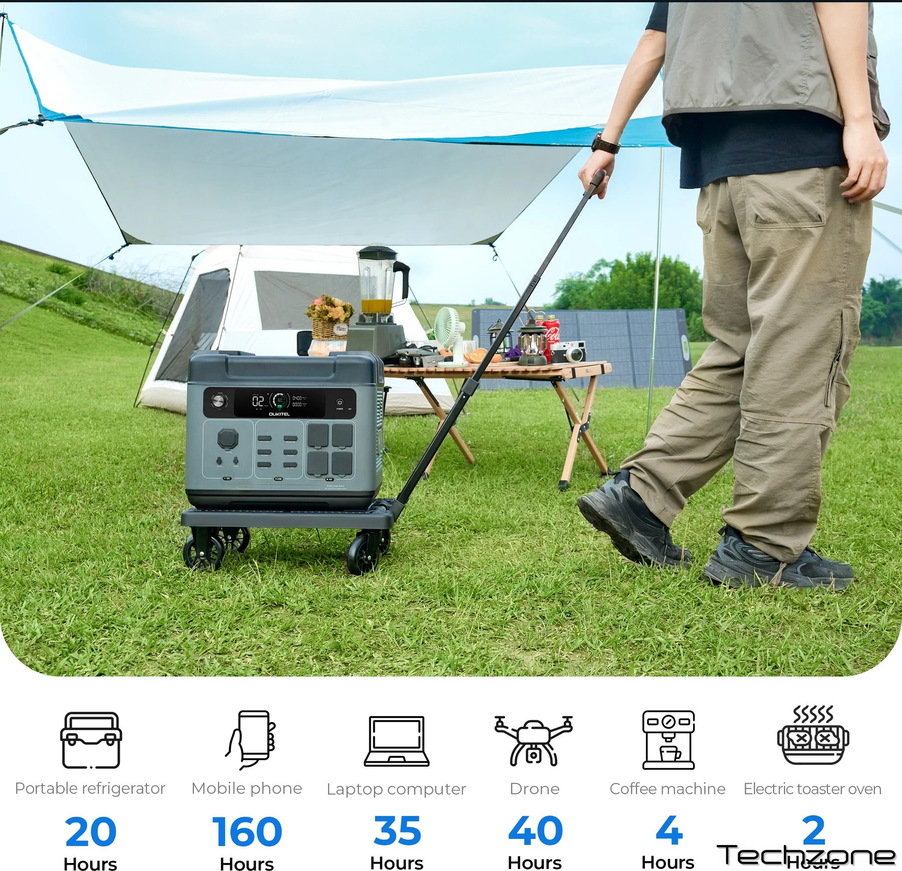 Завдяки високій потужності 2400 Вт , він може забезпечити першокласну продуктивність та безперебійну підтримку живлення, незалежно від того, чи ви вдома, чи на вулиці. Водночас, ємність акумулятора 2048 Вт·год забезпечує тривалу роботу.