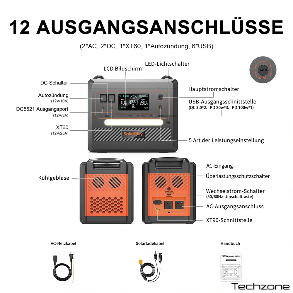 Q2402M забезпечує достатню ємність акумулятора 2304 Вт·год та вихідну потужність 2500 Вт, що підходить не лише для військових, мобільних операцій та кемпінгу на свіжому повітрі, але й для підготовки до надзвичайних ситуацій удома.