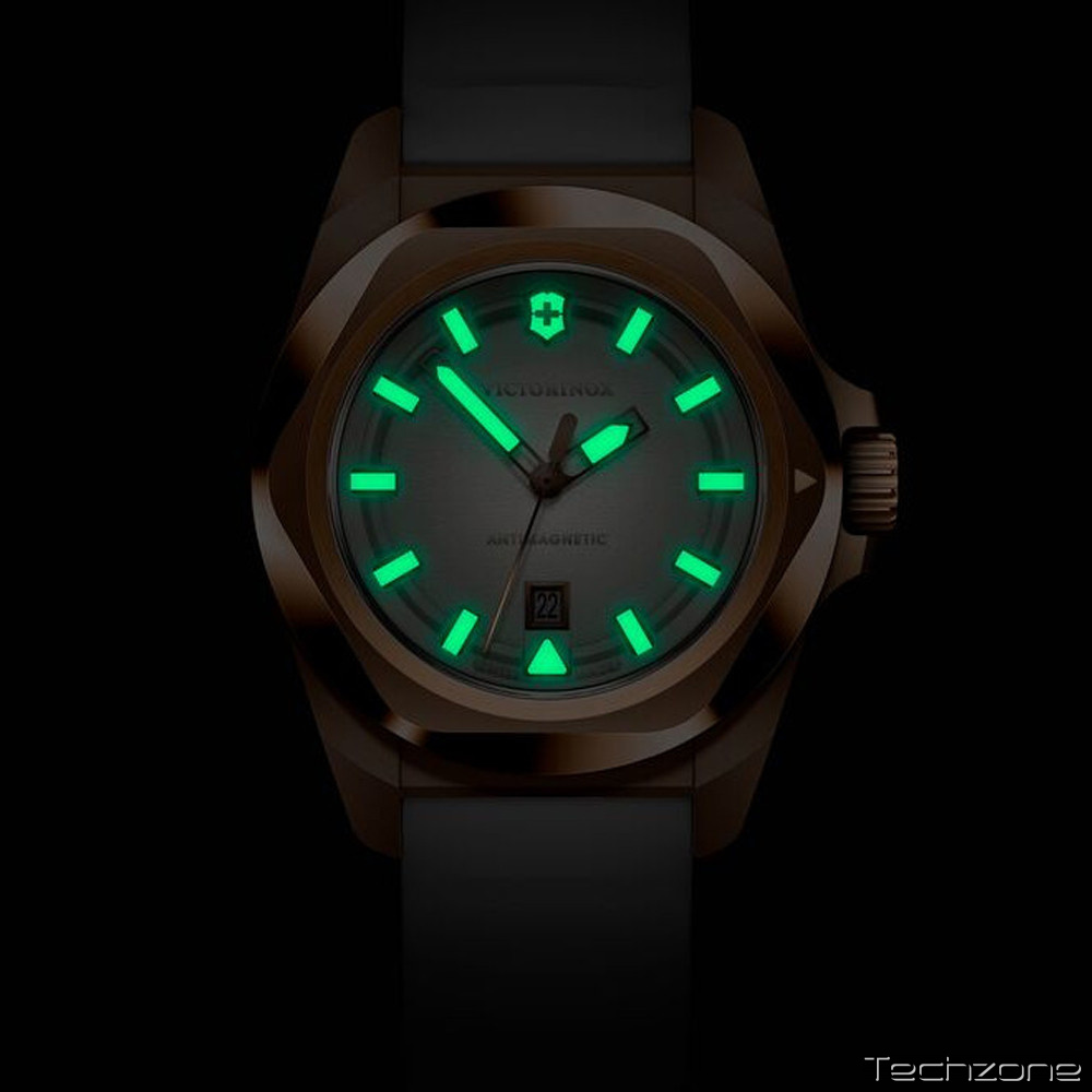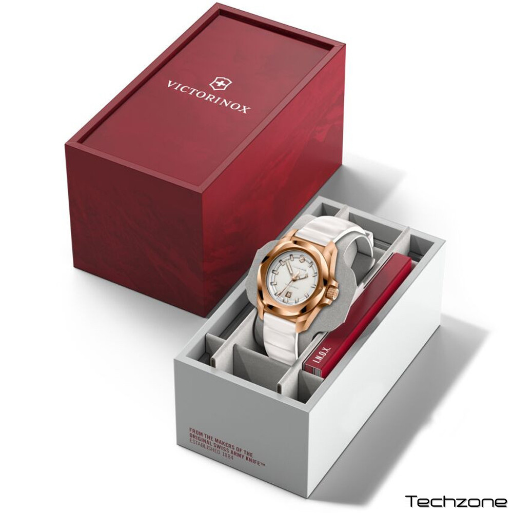 I.N.O.X. (Айнокс) - серія удароміцних і водонепроникних годинників з відмінним зухвалим дизайном безеля. Порівняно з попередніми жіночими моделями цієї серії, I.N.O.X. Small містять усі функції своїх більших аналогів: відображення дати, антимагнітний захист, удароміцність та водонепроникність. Крім того, сертифікований за ISO антимагнітний захист зберігає точність ходу годинника після щоденного впливу електромагнітного випромінювання, наприклад, від телефона або електромашини. Сьогодні годинники Victorinox проектують, виготовляють та тестують на їхньому власному заводі у Делемоні, Швейцарія.